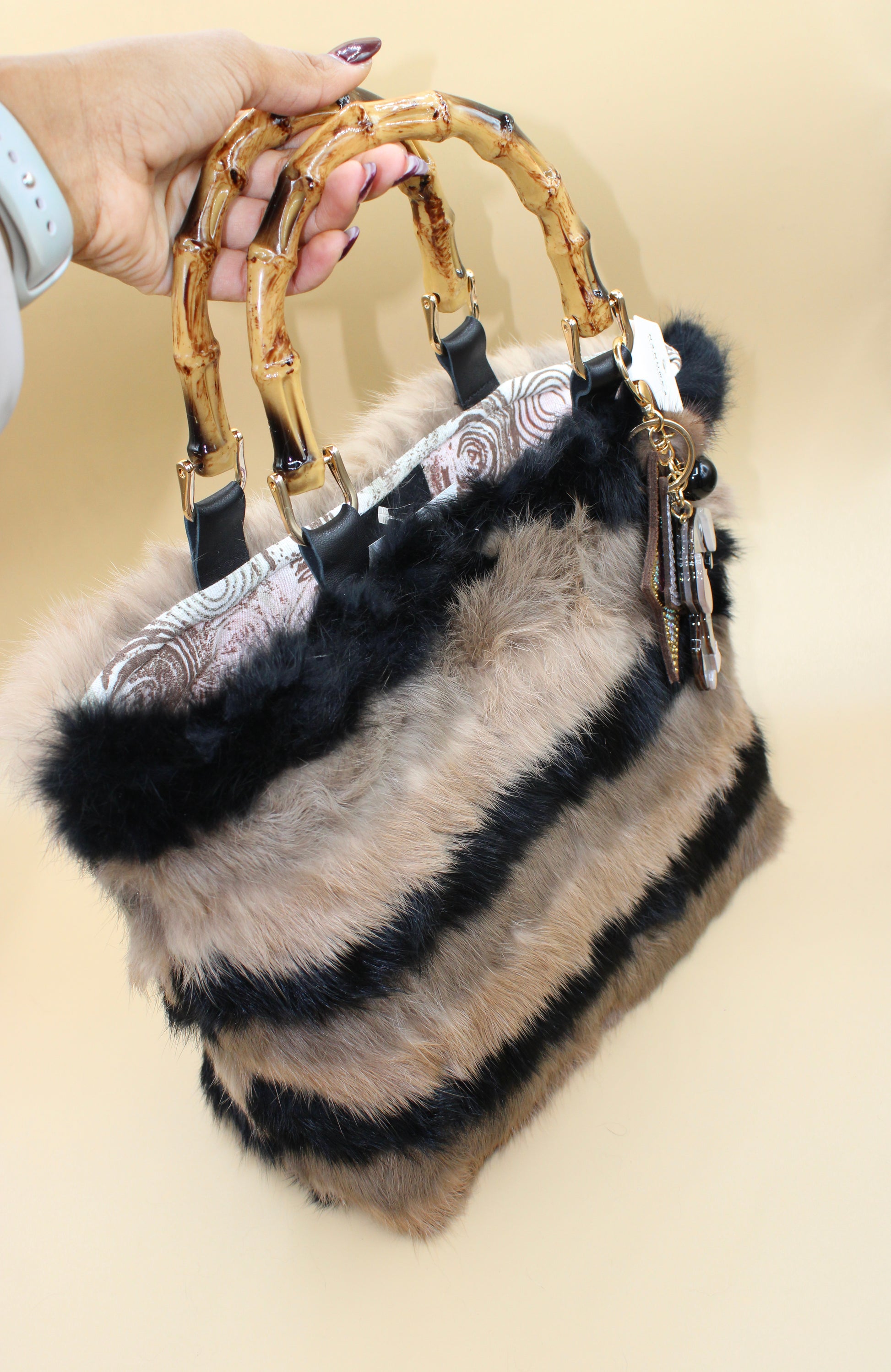 Borsa in Pelliccia con Manici Effetto Bamboo